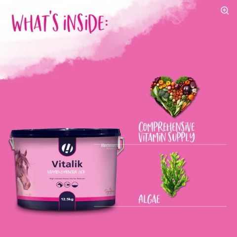 Hestevard Vitalik ir papildbarība laizāmā formā, lai nodrošinātu svarīgus vitamīnus un minerālvielas, kas veicina zirga vispārējo veselību un labsajūtu. Tā formula ir bagāta ar būtiskām uzturvielām, tostarp visaptverošu vitamīnu un mikroelementu piegādi, kas atbalsta optimālu vielmaiņas funkciju un uzlabo kaulu un muskuļu veselību.